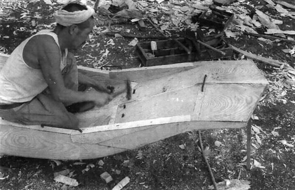 本件は、島根県の隠岐で、漁撈や漁獲物・海藻などの運搬に使用されてきた、ともどと呼ばれる木造和船を製作する工程である。ともどは、刳り抜き材を利用したおもき造りの系統に属する。その製作工程は、原木から粗々の型をとる「荒木どり」と、それを手入れする「仕上げ」に分けられ、その間に2カ月ほどの乾燥期間を設ける。