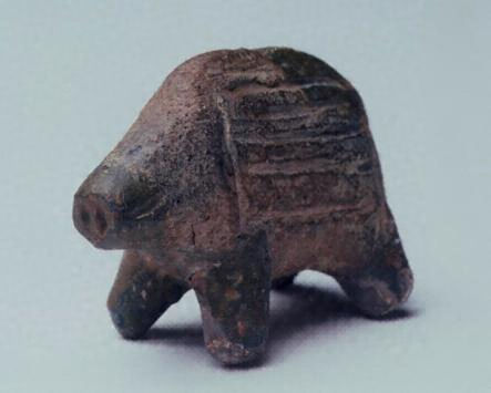 ・この動物土偶は、日ノ浜遺跡(函館市、旧恵山町)から出土した縄文時代晩期に属すると考えられるイノシシの幼獣(うり坊)を象ったものです。
