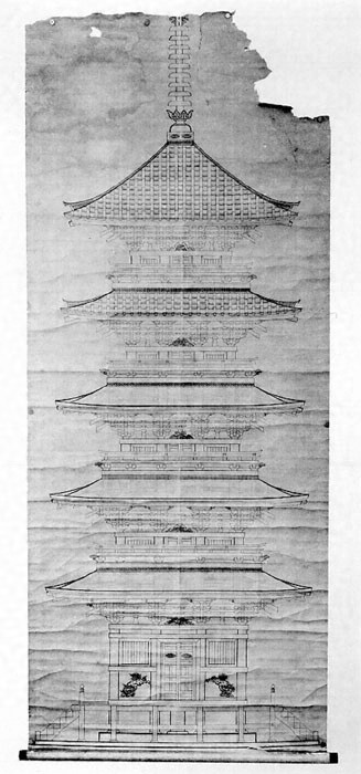 三間五重塔婆、本瓦葺、東面