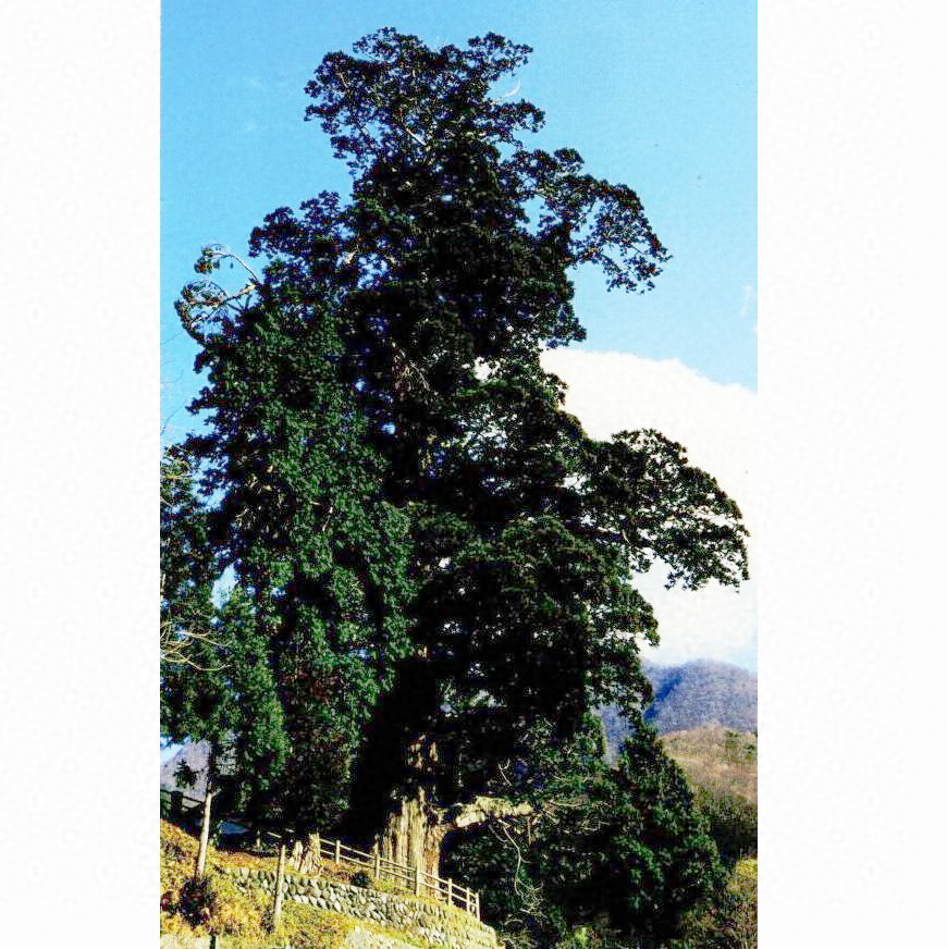 目通幹圍約一〇メートル直幹屹立杉ノ巨樹トシテ有數ノモノナリ
