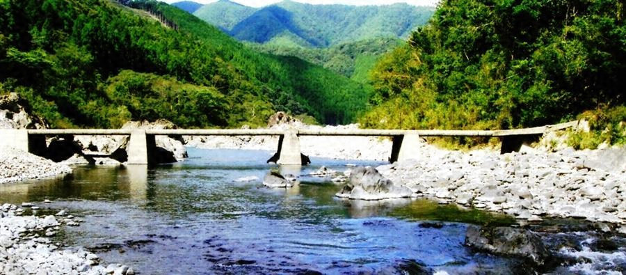四万十川水系梼原川の下流域に架かる沈下橋。岩盤上に建設された橋長27m、幅員3.0mの鉄筋コンクリート造4連桁橋で、スパンは流心付近で最大の8mとする。増水時の水流を考慮し、上流側の水切りを鋭角につくり、桁の両側面を曲面状とする丁寧なつくり。