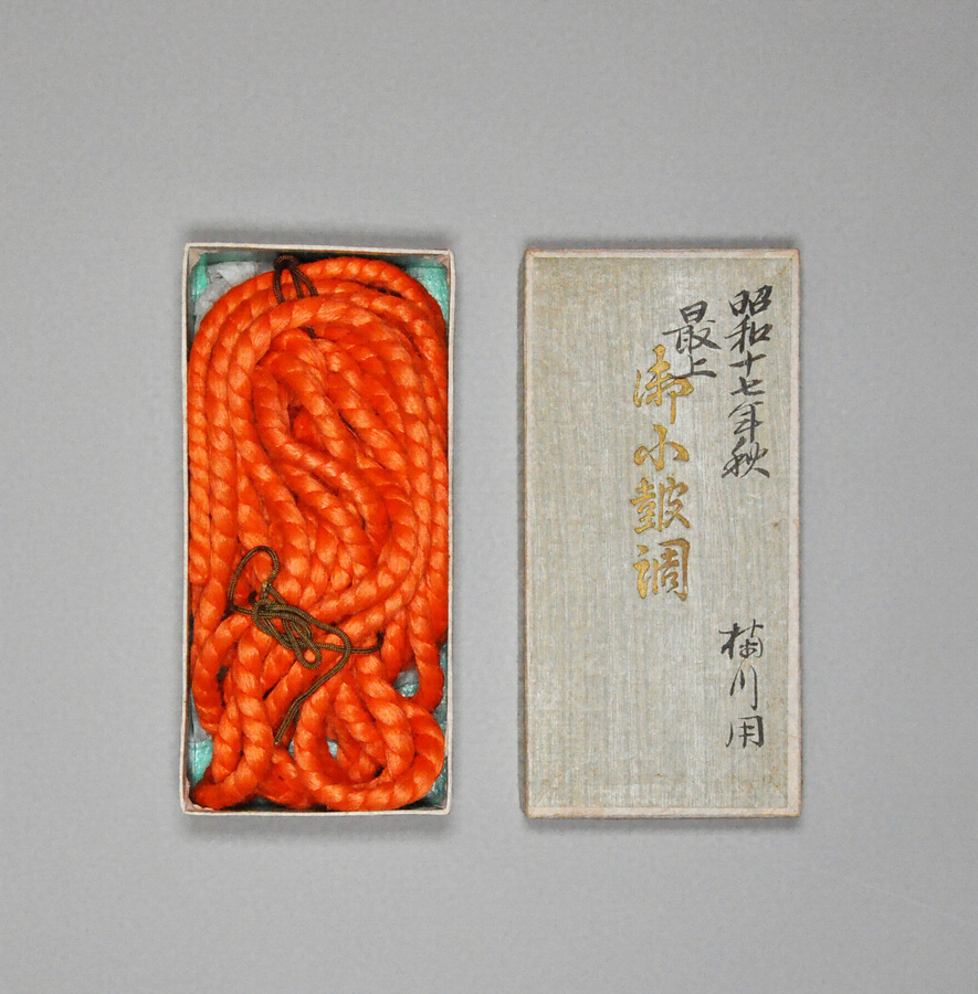 GK8~10で一具となり、胴と革には花菱模様の唐織の裂で作った袋が附属し、調緒も残る。シテ方観世流・楠川正範(1907~1969)師の旧蔵品である。