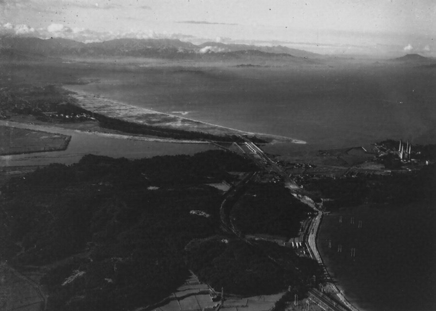 日本航空輸送(株)による、昭和4年7月からの東京-福岡線の時期か、昭和5年4月からの大阪-福岡間の瀬戸内海観光路線開始のいずれかの際の撮影と推測。