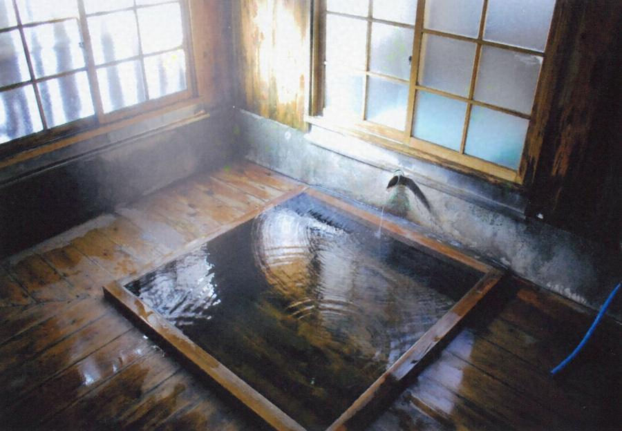 有明山中腹に位置する温泉施設。東西棟の切妻造鉄板葺、桁行13m梁間5.4mの木造2階建。西側に平屋建の浴場を付設。各階とも南側に縁を通し、4室の和室を配する。南面は全面を開放的に扱い、1階を掃き出し、2階を窓とする。近代の湯治場建築の好例。