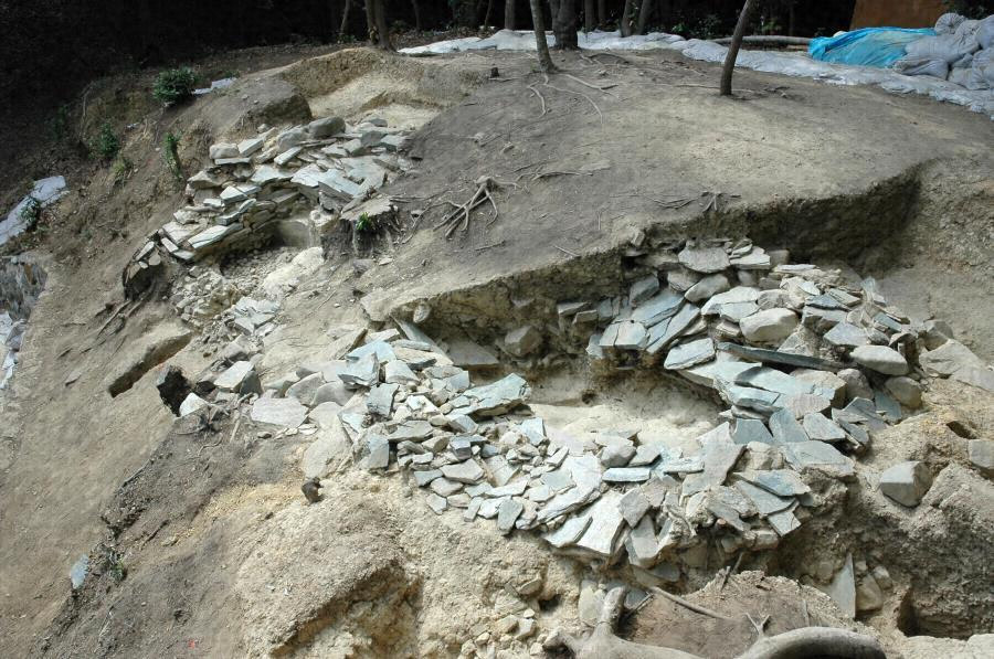 弥生時代終末期には,積石による墳丘を構築し埋葬施設が東西方向であるなど,四国東部の特徴が認められる。古墳時代前期前半でも,前方後円墳の可能性のあるものもあるが基本的に円墳であり,埋葬施設の構造は弥生時代終末期からの影響を受け継ぐ。ところが,古墳時代前期後半になると前方後円墳となり,円筒埴輪を巡らすなど畿内的要素が顕著となる。