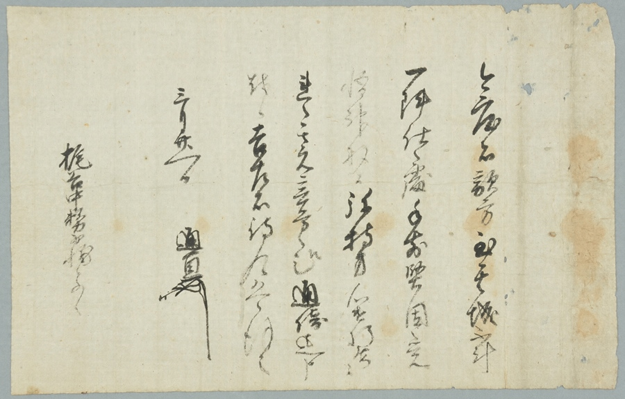 戦国期に喜多郡西部の高森城(現愛媛県大洲市)を本拠とした在地領主梶谷氏伝来の文書である。うち、中世文書は4通で、(1)元亀四年三月二十五日付河野牛福(通直)宛行状、(2)五月十一日付河野通直感状、(3)三月二十一日付河野通直感状、(4)孟夏上澣(四月上旬)付一条兼定宛行状。(1)〜(3)は、戦国末期に争乱状態にあった喜多郡にあって、河野氏に属した梶谷氏に対し、高森城での攻防に関わる功績を称えて河野通直が発給した所領宛行や感状である。(4)は、土佐一条氏の実質上の最後の当主兼定が、梶谷氏から受けた懇意に対し、予土国境付近で所領を与えた宛行状で、兼定時代の発給文書のほとんどが執政康政の奉書形式である中で、唯一現存する貴重な事例である。