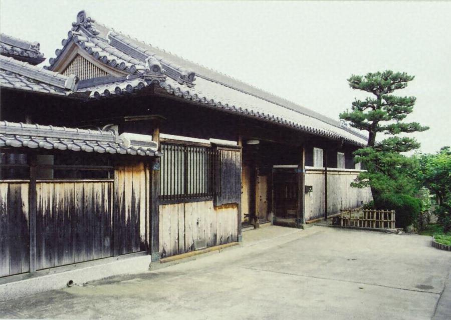 敷地の西側南寄りに西面して建つ。長屋門形式の建物で、入母屋造本瓦葺とし、東面の一部に下屋を付す。門口の北にウシベヤ、南にウマベヤほか四室を並べる。ウマベヤに馬とどめの柵を残す希少な遺構であり、旧家の正門として景観上も重要な役割を果たしている。