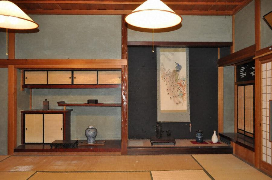 事務所兼主屋の北東に接続し、東西棟で建つ。一二畳の広い一室の座敷の東・南方に、深い庇を架けて板縁と土縁を廻す。北に床、棚、書院を設ける。垂木は疎らにし、軒を軽やかに見せる。イチイや黒檀などの銘木を用いて趣向を凝らした接客空間である。