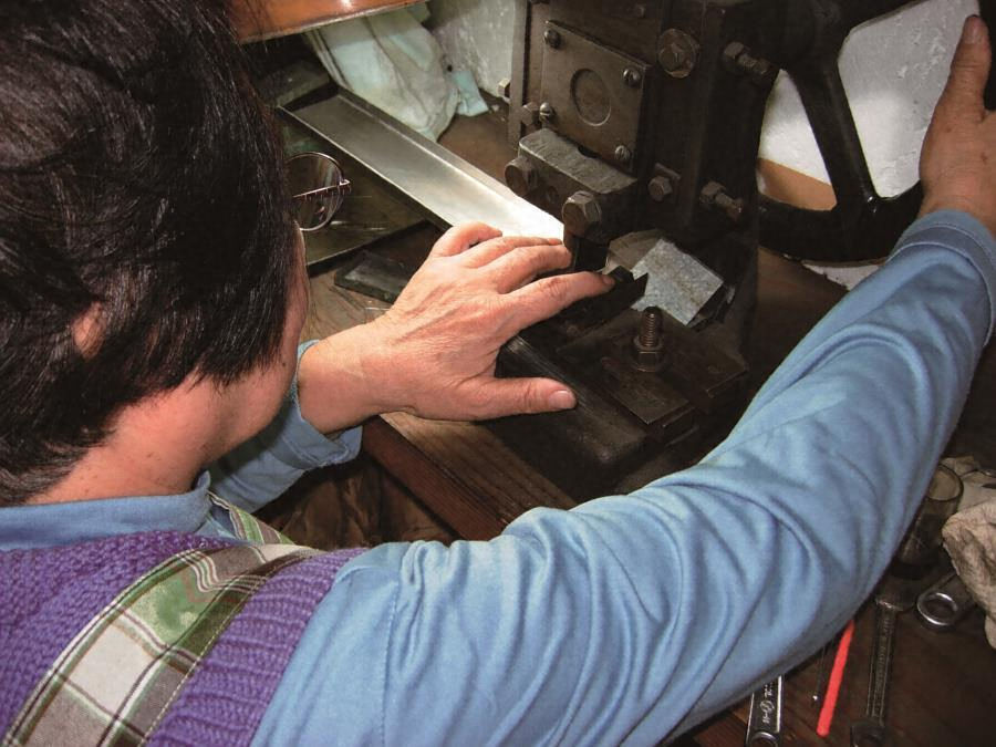 手打針製作とは、染織品の縫製や刺繍等に用いられる針を製作する技法である。