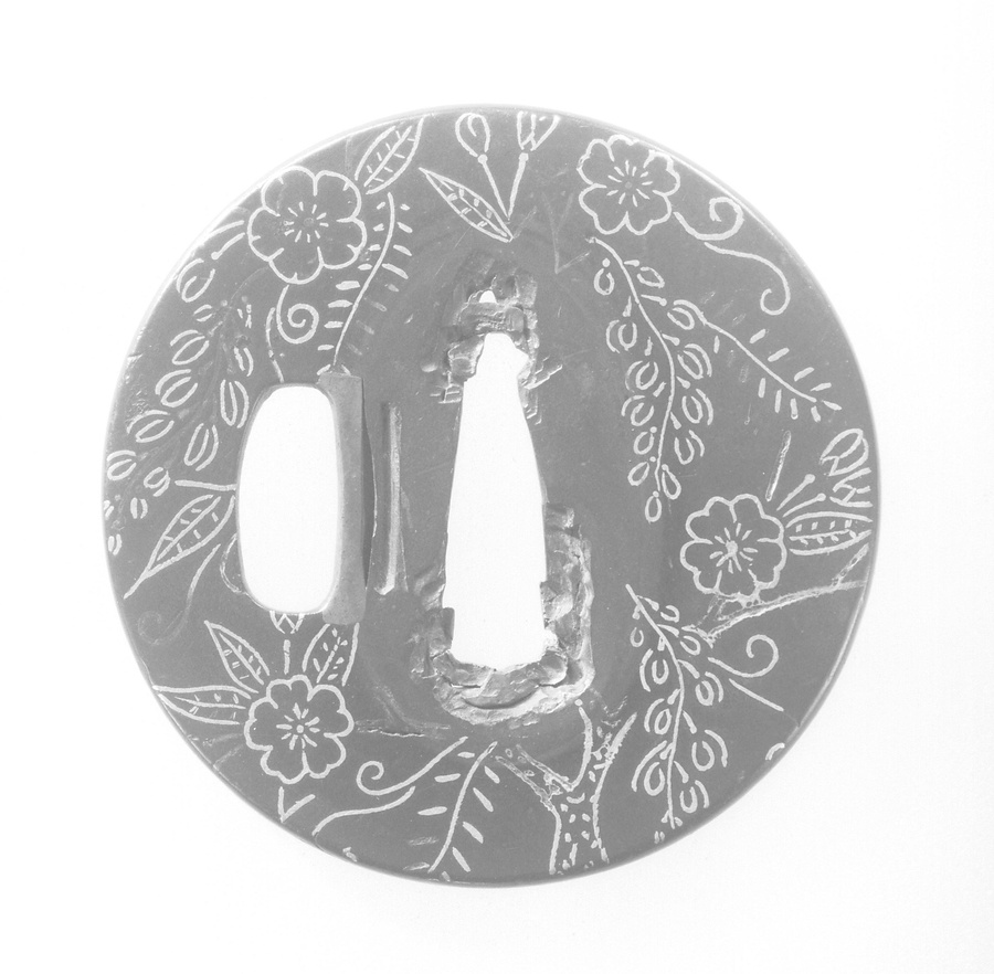 桜花垂藤象嵌円形烏銅鐔をもっと見る