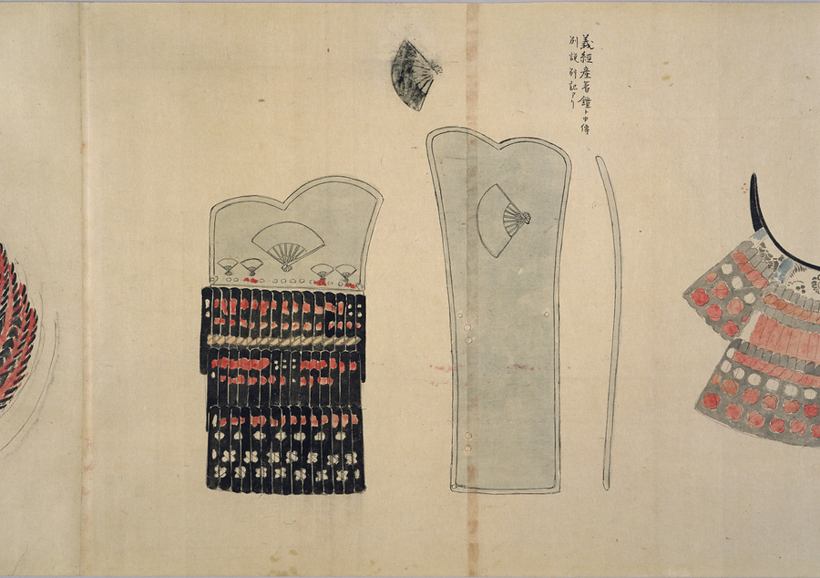 古代甲鐙佩立並箙太刀古武器図をもっと見る