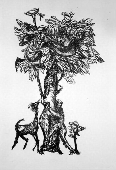 瑛九・銅版画 「SCALE I」より 17.話しする木