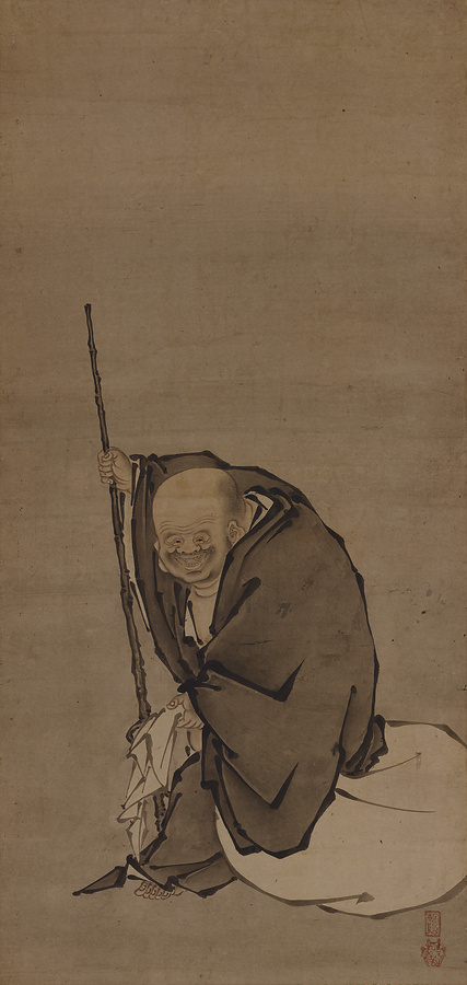 紙本墨画中琴高左右群仙図〈雪村筆/〉