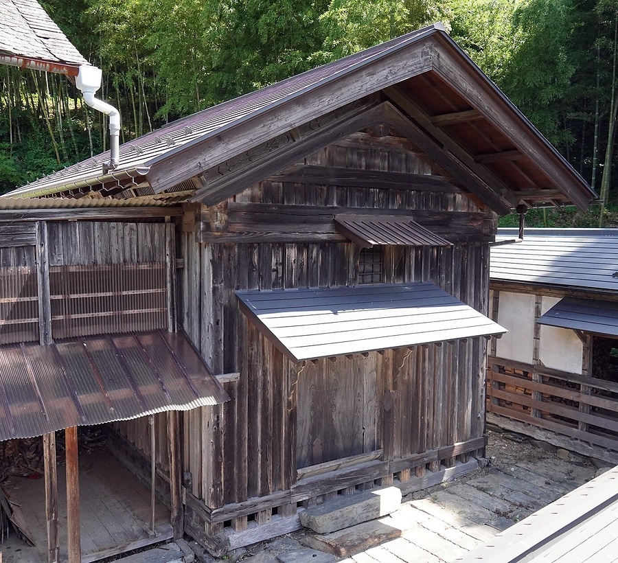 主屋の東側に南面して建つ籾蔵。二階建切妻造妻入で、屋根は置屋根形式の鉄板葺とし、正面西寄りに戸口を開け腕木庇を付す。内部は一室の板敷で南半上部に二階を設ける。側柱を密に立てた当地特有の板倉で、置屋根の面戸板を彫刻で飾るなど丁寧なつくり。