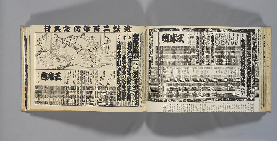 六代目鶴澤友次郎が、明治19年(1886)5月から昭和11年(1936)10月までの番付を、台紙に貼付して綴じたもの。現代でいう「スクラップブック」であるこうした資料は、「貼り込み帖」とも称され、後年貴重な資料となることが多い。