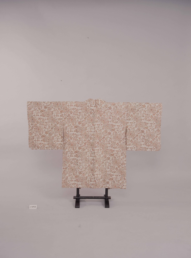 絹紡糸使用、白地に多色(ラメ入)の菊花模様総柄