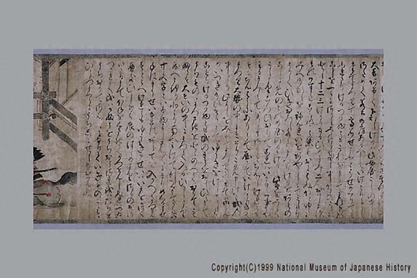 「結城合戦絵詞」は、永享の乱で関東管領と幕府の軍に敗れて自害した鎌倉公方足利持氏の遺児春王丸と安王丸が、結城氏朝・持朝父子に擁立されて起こした永享12年から嘉吉元年(1440~41)にかけての反乱を主題とした絵巻。この戦いで氏朝・持朝は敗死し、遺児らは捕らえられ殺された。現状残るのは2場面で、幕府軍と持氏軍の戦いで敗れた持氏が炎上する館内で割腹する場面と、幕府軍と結城軍の戦いで敗れた結城方が女装させた遺児らを落ち延びさせようとする場面。本絵巻の詞書は、長享2年(1488)に成立した『鎌倉殿物語』のそれと共通する部分が多い。