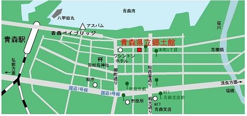 ●市営バス JR青森駅より「国道経由」(又は「古川経由」)の各線にて市役所前下車後 徒歩約8分