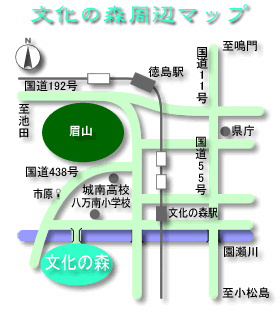 JR徳島駅から徳島市営バス「文化の森」直通バス利用(約20分)