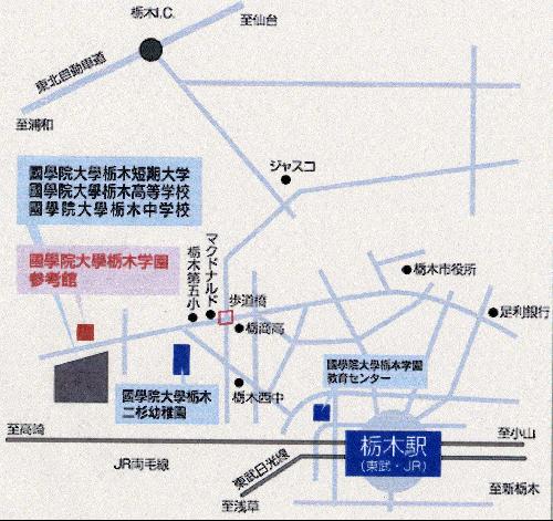 東武日光線・JR両毛線栃木駅北口下車、北口から國學院行き関東バス10分終点下車