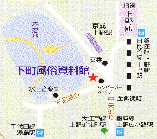 JR上野駅または御徒町駅、東京メトロ銀座線・日比谷線上野駅、千代田線湯島駅、都営大江戸線上野御徒町駅より徒歩5分。京成電鉄京成上野駅より徒歩3分。