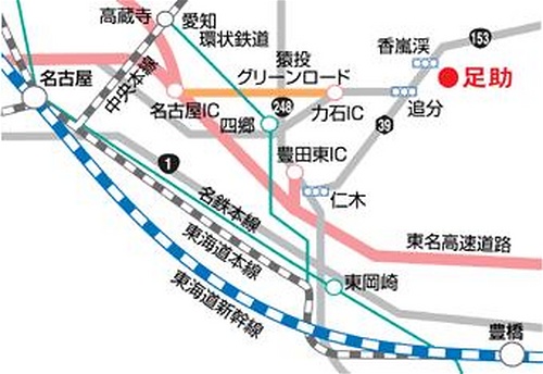 (車)東海環状自動車道・豊田勘八インターより国道153号で約15分。