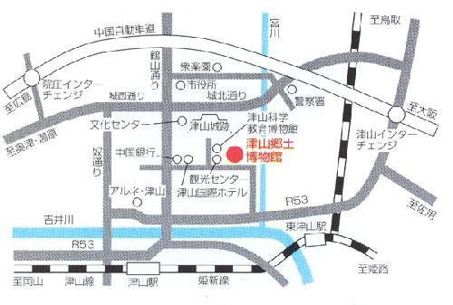 JR津山駅から北へ徒歩15分中国自動車道、津山・院庄各インターから車で15分