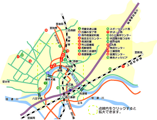 JR弥彦線燕三条駅及び北陸自動車道三条・燕インターから車で5分