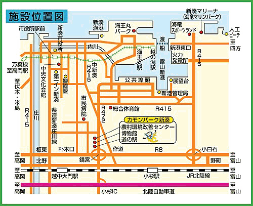 JR小杉駅からタクシーで10分:万葉線中新湊駅からタクシーで6分:車の場合、小杉インターから北へ直進6.5キロ、約10分。JR小杉駅・越中大門駅および万葉線中新湊駅からコミュニティバスも出ています。