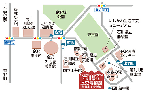 北鉄バス:「出羽町」下車徒歩5分・「広坂・21世紀美術館」下車徒歩8分