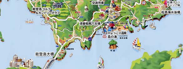 JR金沢駅から七尾線和倉温泉駅下車。駅前にあるバス停から臨海公園行きバス(能登島バス)に乗り、須曽で下車、徒歩約30分。