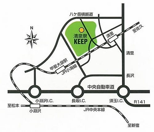 JR小海線清里駅より車で5分または徒歩30分