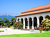 長野県の中心、飛騨山脈の山麓に広がる安曇野に建つ安曇野市豊科近代美術館は、1992(平成4)年に開館しました。建物はヨーロッパの中世修道院をイメージした重厚感あるロマネスク様式の建築で、美術館の敷地には、バラを中心とした庭園があり地域の憩いの場として親しまれています。日本を代表する近代彫刻家のひとり、高田博厚の彫刻作品や、森鴎外ゆかりの画家、宮芳平の絵画作品の他、安曇野や信州を代表する作家の作品を常設展示しています。