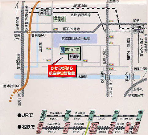 名鉄各務原線各務原飛行場下車・シャトルバス10分:東海北陸自動車道各務原インターから15分