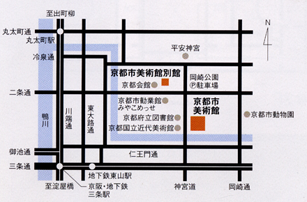 京都市営地下鉄東西線東山駅下車徒歩10分、京都市バス京都会館美術館前下車すぐ