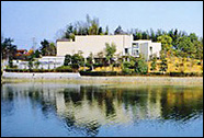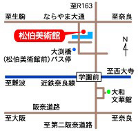 近鉄奈良線学園前駅下車バス10分、大淵橋(松伯美術館前)大淵橋渡ってすぐ。