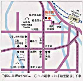JR広島駅から900m徒歩10分市内電車、バス「縮景園前」下車