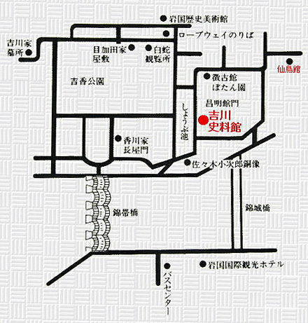 JR岩国駅より錦帯橋行きバス15分、新幹線新岩国駅バス10分、錦帯橋下車、徒歩10分:山陽自動車道岩国ICから10分