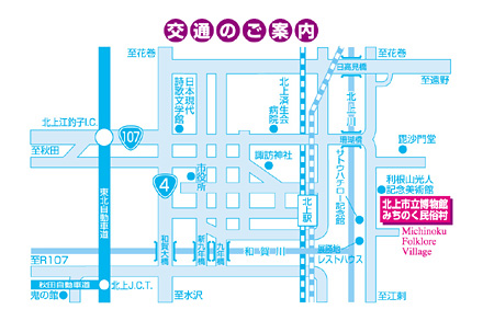 JR北上駅から江刺バスセンター行・熊沢行バスで約15分、展勝地下車、徒歩2分